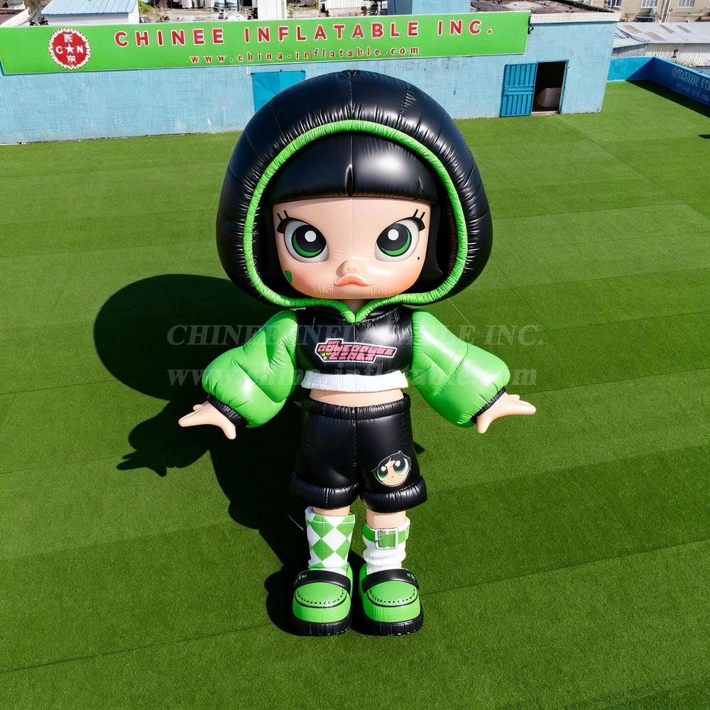 Crafted with meticulous attention to detail, this impressive inflatable showcases a charming character with large expressive green eyes, rosy cheeks, and a friendly demeanor that appeals to audiences of all ages. The character sports a trendy green and black outfit complete with decorative elements and stylish footwear, making it perfect for modern events and promotional activities.