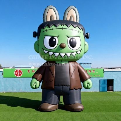 Crafted with meticulous attention to detail, this inflatable cartoon showcases oversized bunny ears adding a whimsical twist to the traditional monster design, dressed in a brown jacket and dark pants complete with sturdy boots. The character's large expressive eyes and playful smile make it perfect for family-friendly events while maintaining that unmistakable Halloween appeal.
