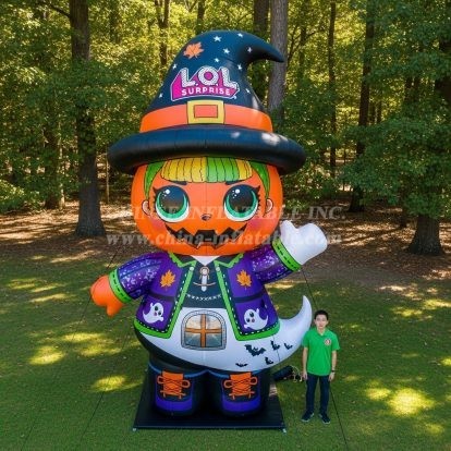 Bring the magic of spooky season to your venue with the Cartoon3-289 L.O.L. Surprise Halloween Witch Inflatable Cartoons by Chinee Inflatables. This towering decorative character features a playful witch hat, jack-o’-lantern face details, and festive graphics, making it a perfect photo centerpiece for malls, theme nights, storefronts, school fairs, and community festivals. Designed strictly as a display inflatable (not for bouncing or sliding), it creates instant visual impact and draws crowds from a distance.