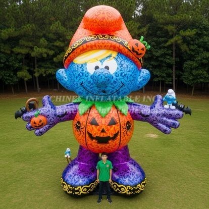 Bring unforgettable seasonal charm to your venue with the Cartoon3-312 The Smurfs Halloween Inflatable Cartoons by Chinee Inflatables. This towering decorative inflatable features a friendly blue character styled for Halloween, complete with jack-o’-lantern graphics, playful bats, and spider details to capture the spirit of the season. Designed as a display piece (not for bouncing or sliding), it is ideal for malls, theme events, photo spots, school fairs, and outdoor festivals seeking a high-visibility attraction.