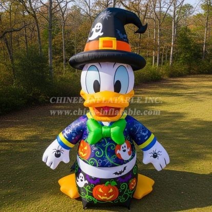 Bring festive charm to your autumn events with the Cartoon3-335 Donald Duck Halloween inflatable from Chinee Inflatables. This eye‑catching display piece features a cheerful duck character dressed for trick‑or‑treating, complete with a tall witch hat, bright bow tie, and a costume adorned with pumpkins, bats, webs, and friendly ghosts. Designed purely for decoration, it’s ideal for front yards, storefronts, school fairs, community festivals, and themed parties where you want a safe, welcoming centerpiece that delights guests of all ages.