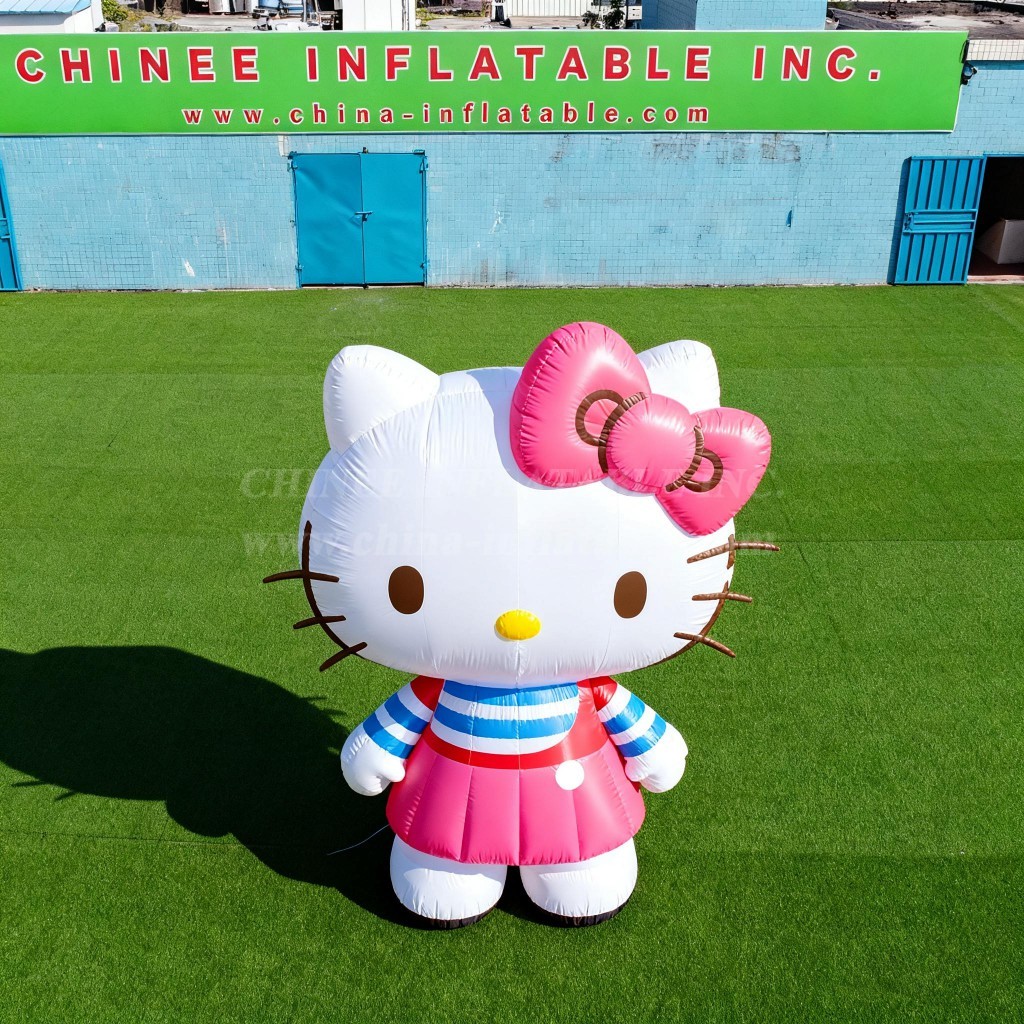 Delight guests with our Cartoon3-428 Hello Kitty Inflatable Cartoon from Chinee Inflatables Inc., a charming freestanding character display perfect for visual impact at any event. This adorable kitty figure features the iconic white face, pink bow, and colorful outfit, instantly creating a friendly photo spot that attracts families and shoppers alike. Designed as a decorative inflatable, it does not include a bouncing area or slide—making it ideal for storefronts, stage backdrops, festival entrances, and themed brand activations.