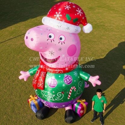 Bring festive cheer to your next event with the Cartoon3-561 Peppa Pig Christmas Inflatable Cartoons from Chinee Inflatables Inc. This giant decorative figure captures a joyful holiday look with a Santa-style hat, scarf, and ornament graphics—perfect for town squares, shopping malls, school fairs, and photo ops. Designed as a display piece (not for bouncing), it stands tall to deliver instant visibility and a friendly, family‑focused atmosphere.