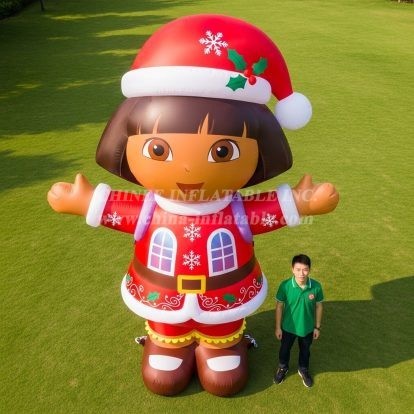 Bring festive cheer to any venue with our Cartoon3-582 Dora Christmas Theme Inflatable Cartoon. This large decorative inflatable features a friendly girl character dressed in a red holiday outfit with snowflake details and a Santa-style hat, making it a perfect seasonal centerpiece for plazas, malls, school events, photo spots, and community celebrations. Designed as a display piece (not for bouncing or sliding), it belongs to our Inflatable Cartoons category and is built to make an immediate visual impact from a distance.