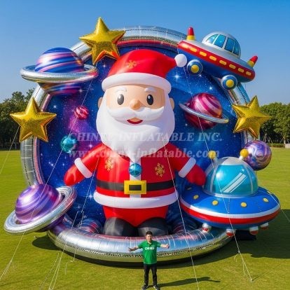 Bring a show-stopping holiday centerpiece to your venue with the Cartoon3-625 Santa Claus Space Theme Inflatable Cartoons. This oversized decorative inflatable features a cheerful Santa surrounded by planets, stars, and playful spacecraft, creating a whimsical cosmic scene that attracts attention from every direction. Designed for visual impact rather than bouncing or sliding, it is perfect for malls, town squares, theme parks, parades, corporate campuses, and winter festivals.