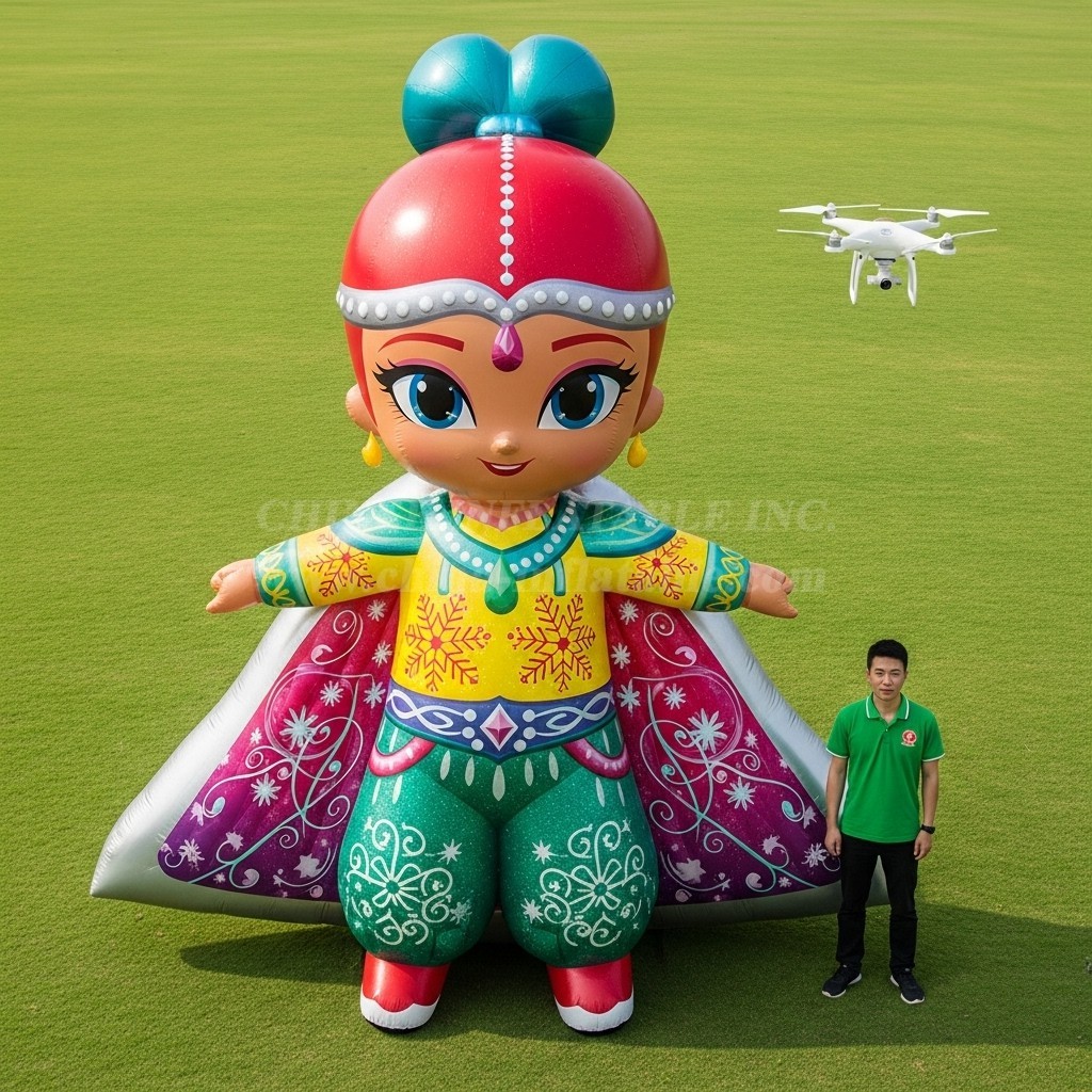 Bring magical color and instant crowd appeal to your event with the Cartoon3-651 Shimmer & Shine Inflatable Cartoon by Chinee Inflatables Inc. This eye‑catching freestanding character is designed purely for decoration and photo opportunities—not for bouncing—making it perfect for entrances, stage backdrops, parades, and brand activations. The vibrant genie-inspired outfit features detailed winter motifs and floral patterns that read beautifully from a distance, drawing families and kids to your space.