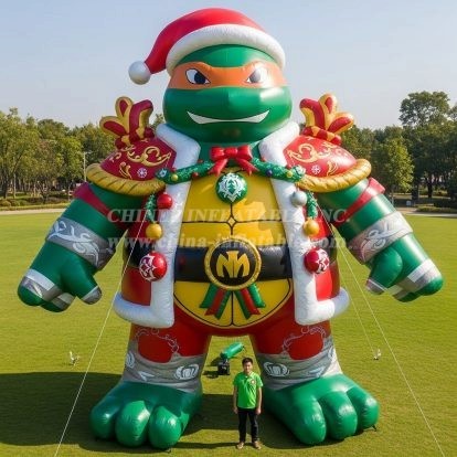 Bring instant holiday excitement to your venue with the Cartoon3-674 Ninja Turtles Christmas Inflatable Cartoons by Chinee Inflatables Inc. This towering character display, styled with a Santa hat and festive detailing, is designed as a decoration-only inflatable—perfect for drawing crowds without the need for climbing or bouncing. It’s an eye-catching centerpiece for shopping malls, city squares, school events, parades, and brand activations looking to add a playful seasonal twist.