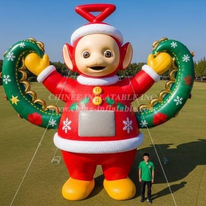 Bring instant holiday cheer to your venue with the Cartoon3-690 Teletubbies Christmas Inflatable Cartoons by Chinee Inflatables. This towering display features a cheerful Teletubby styled in a Santa outfit, complete with festive wreath details and snowflake graphics. Designed as a decoration-only inflatable, it’s perfect for drawing attention at shopping centers, town squares, parades, winter festivals, school fairs, and corporate seasonal campaigns.