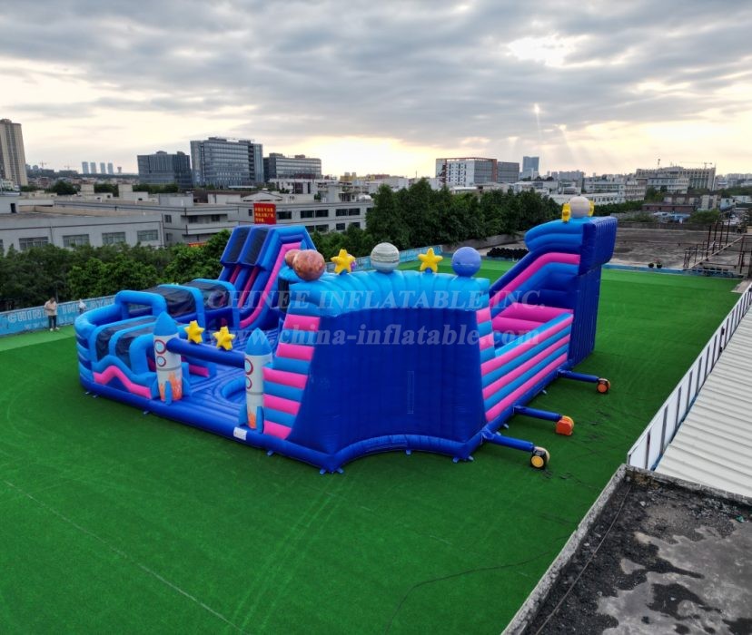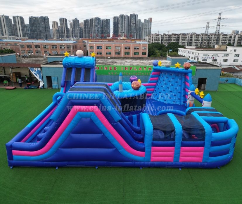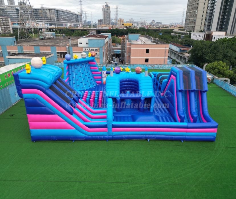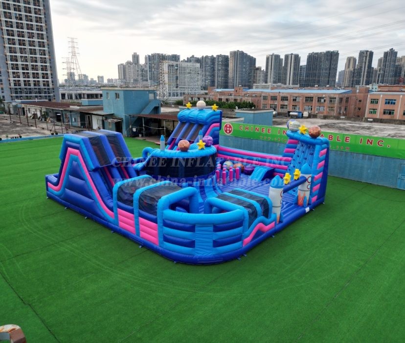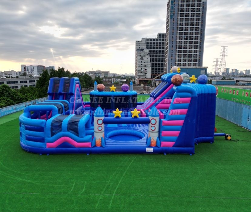 Why This Cosmic Obstacle Course is a Stellar Choice: 🏁 Competitive Fun: The dual-lane design is perfect for encouraging friendly competition, making it a massive hit at school carnivals, corporate team-building events, and parties. ✨ Vibrant, Eye-Catching Design: The unique galaxy theme and colors stand out beautifully and attract riders of all ages. 📈 High-Energy & High-Throughput: Keeps lines moving and energy levels high, making it a profitable and popular rental piece. 💪 Superior Factory Quality: Designed and built by Chinee Inflatables using premium, durable materials and safety-first construction for reliable commercial use.