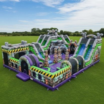 Für all unsere aufblasbaren Hüpfburgen und aufblasbaren Spiele werden strapazierfähige Entlüftungsreißverschlüsse nach EN14960-Standard hinzugefügt, um das schnelle Entleeren jeder aufblasbaren Spielzeug zu unterstützen. Wir verstärken alle Reißverschlussverbindungen.