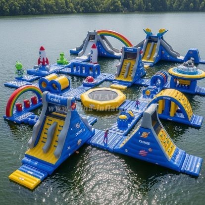 Launch your waterfront attraction to new heights with the S398 Space Theme Water Park by Chinee Inflatables Inc., the leading inflatable manufacturer in China since 1998. This large, modular floating park transforms any lake or calm seaside into an interstellar adventure, featuring rocket towers, UFO-style hubs, rainbow arches, climbing pyramids, jump pads, and multiple slides for all‑ages fun.