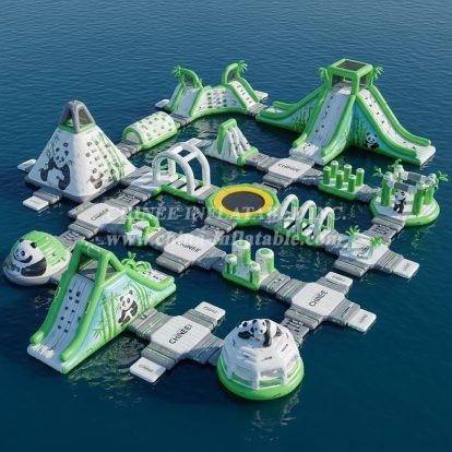 Chinee verwendet maßgeschneidertes Material, das gegen UV und Hitze beständig ist und die Lebensdauer des schwimmenden Wasserparks um 30%-50% verlängert im Vergleich zu normalem Material, das die meisten Lieferanten verwenden, insbesondere in Gebieten mit starker UV-Strahlung und hohen Temperaturen.