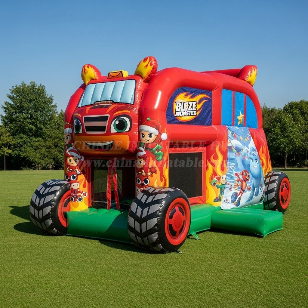 Rev up the fun with the T2-8583 Blaze Monster Inflatable Bouncer from Chinee Inflatables Inc., China’s leading inflatable manufacturer since 1998. Styled like a cheerful monster truck with bold flames, oversized tires, and vibrant character artwork, this bounce house instantly becomes the star attraction at any event. Kids enter through the front grille and enjoy a spacious jumping area that keeps them active and entertained for hours.