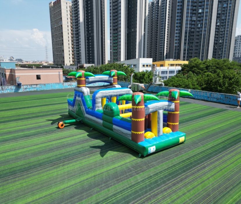 Get ready for an adventure! Bring the excitement of a tropical jungle to any event with our incredible Dual-Lane Inflatable Obstacle Course. This unit is a showstopper, designed for high-energy fun and friendly head-to-head competition!