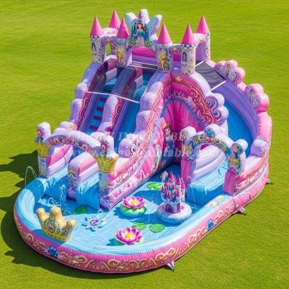 Bring storybook magic to your next event with the T8-8774 Princess Castle Inflatable Water Slide. Crafted by Chinee Inflatables Inc. (est. 1998), this enchanting castle pairs dual slide lanes with a spacious splash pool, decorative turrets, and vivid princess artwork for an unforgettable royal adventure. Children climb the easy-access ladder to the top platform, then glide down sweeping pink-and-blue slides into the refreshing pool, complete with playful water features and lily pad details. The design emphasizes safety and durability: reinforced stitching, commercial-grade PVC, protective netting on elevated areas, and soft, rounded barriers keep riders secure while maximizing fun. Set-up is fast with high-efficiency air blowers and clearly marked anchoring points, making it ideal for rental fleets, schools, resorts, and backyard parties alike. Operators will appreciate quick-drain ports and easy-to-clean surfaces that minimize turnaround time during busy seasons. Themed graphics, floral trim, and a charming mini-castle centerpiece transform ordinary spaces into a royal courtyard, perfect for photo moments that delight guests and boost event visibility. With 20+ years of manufacturing expertise and global export experience to the USA, UK, Russia, and the Middle East, Chinee Inflatables delivers dependable quality backed by professional support. Choose the T8-8774 to add a show-stopping centerpiece to your inventory—captivating colors, smooth slide action, and a fairy-tale atmosphere that keeps kids lining up for more. Contact our Guangzhou factory team at [email protected] or visit www.china-inflatable.com to customize sizes, colors, and branding to suit your market.