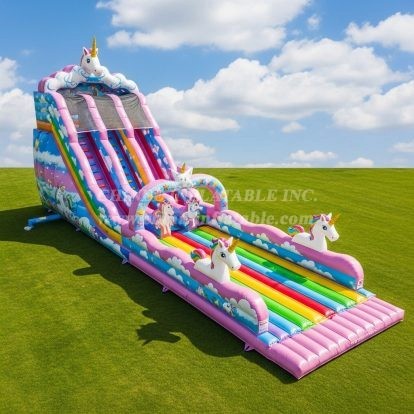 Bring magical fun to your event with the T8-8826 Unicorn Inflatable Slide by Chinee Inflatables. Featuring vibrant rainbow lanes, charming unicorn characters, and whimsical cloud designs, this giant slide promises an unforgettable experience for kids. Built with premium materials for safety and durability, it’s perfect for birthdays, school events, and festivals. Let imaginations soar as children race down this enchanting inflatable centerpiece.