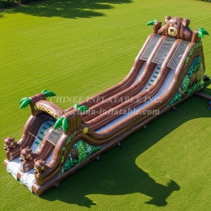 Experience exhilarating fun with the T8-8833 Bear Inflatable Dry Slide from Chinee Inflatables. Featuring a charming bear design, lush jungle artwork, and vibrant inflatable plants, this giant slide offers an exciting adventure for kids and adults alike. Built with durable, high-quality materials, it’s perfect for outdoor events, school fun days, or amusement parks. Easy to set up and designed for safety, this slide ensures hours of entertainment that will delight participants and spectators.