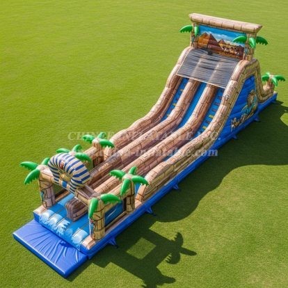 Experience the thrill of adventure with the T8-8921 Egypt Inflatable Dry Slide from Chinee Inflatables. Featuring stunning pyramid and sphinx graphics, along with decorative palm trees, this slide offers a unique blend of ancient Egyptian style and tropical flair. Built with high-quality materials and a safe, fun design, it’s perfect for themed events, outdoor parties, and amusement rental businesses. Bring history and excitement together for unforgettable entertainment.