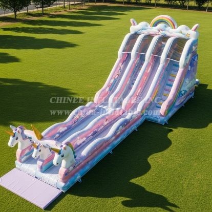 Make any celebration magical with the T8-8923 Unicorn Inflatable Slide from Chinee Inflatables. Featuring vibrant unicorn characters, a stunning rainbow arch, and whimsical pastel colors, this slide offers exhilarating fun for children. Perfect for birthday parties, festivals, and themed events, its durable construction ensures safety and long-lasting use. Bring joy and excitement to your next gathering with this enchanting inflatable centerpiece.