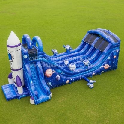 Blast off into adventure with the T8-8966 Space Theme Inflatable Slide! Featuring a towering rocket, vibrant planetary designs, and thrilling sliding lanes, this inflatable promises an out-of-this-world experience for kids and adults alike. Perfect for events, parties, or amusement zones, its durable materials and eye-catching galactic artwork ensure endless fun while igniting imaginations. Bring the universe to your next event and let your guests slide through the stars!