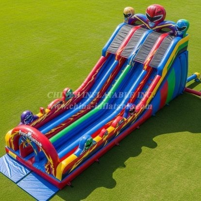 Experience thrilling high-speed fun with the T8-9078 Power Rangers Inflatable Slide. Featuring vibrant team colors and iconic character helmets, this triple-lane slide invites kids to race down in safe, inflatable style. Perfect for birthday parties, school events, or festivals, it guarantees excitement and adventure for all young fans of the Power Rangers.