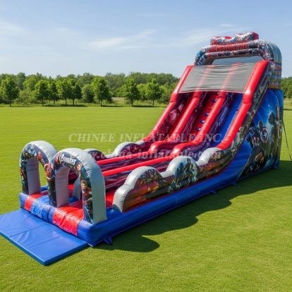 Experience the thrill of sliding with your favorite Avengers heroes on this vibrant inflatable slide. Featuring eye-catching Marvel graphics and a dual-lane design, it offers fun and excitement for kids of all ages. Durable and safe, this inflatable slide is perfect for superhero-themed events, parties, and outdoor play areas.