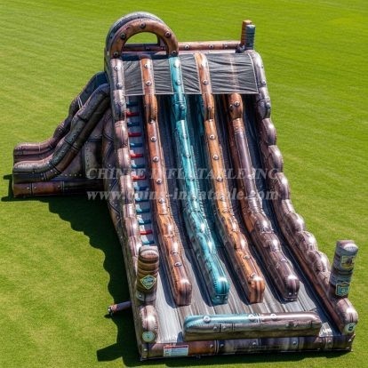 Experience the thrill of our Rusty Rivets Inflatable Slide, designed with detailed riveted metal textures and multiple sliding lanes. This eye-catching inflatable combines the excitement of steep slides with climbing steps, perfect for competitive fun and outdoor events. Its industrial aesthetic makes it a unique centerpiece to entertain guests of all ages.