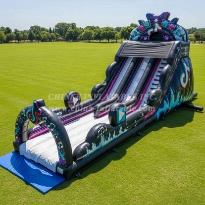 Bring the excitement of the TikTok craze to your events with this vibrant Inflatable Slide. Featuring iconic music notes and bold neon colors, it endless fun for kids and teens. Perfect for outdoor parties, this slide delivers thrilling speed and a smooth landing, ensuring memorable entertainment with a trendy, modern flair.