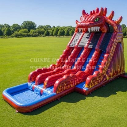 Unleash fiery fun with this multi-lane T8-9220 Blaze Monster Inflatable Water Slide. Bold dragon head, vibrant flame graphics, and three racing lanes lead to a splash pool for nonstop thrills. Built from commercial-grade PVC with reinforced seams and safety rails, it's perfect for water parks, festivals, and rental businesses seeking an eye-catching, high-capacity attraction.