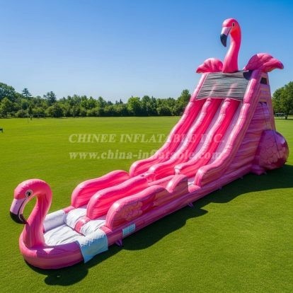Make a splash with this eye-catching Flamingo Inflatable Water Slide. Featuring bold pink flamingo details and multi-lane sliding for fast, fun runs, it’s perfect for summer events, rentals, and family parks. Built from heavy-duty, commercial-grade PVC with reinforced seams and safety netting, this easy-to-install attraction delivers big thrills while keeping kids safe and entertained all season long.
