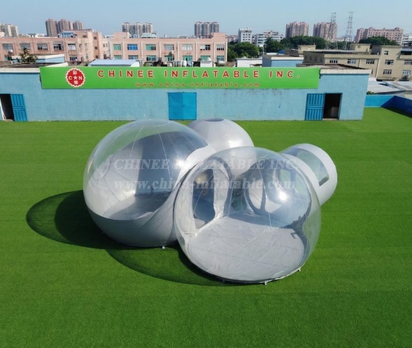 Translucent and half-transparent designs are also available. Additional variants include beach-friendly bubbles that put you right up next to the water, and tree-suspended versions that wrap around trunks and hover over the ground. Created from UV-reflecting recyclable materials, these structures can be set up in a matter of minutes and remain inflated via continuously-running silent pumps that automatically keep up a constant internal pressure.Transparent bubble tent is favored for its wide application for advertising, camping, holiday leisure outdoor activities, trade shows, exhibitions, promotion, outdoor shelter, etc.